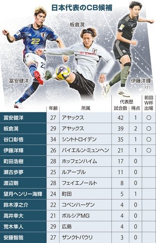 1月29日讯 今日,日媒《读卖新闻》撰文直言随着世界杯的临近,日本国家队在后卫线上的竞争愈发激烈。该媒体还列出了12名候选球员,富安健洋、伊藤洋辉、板仓滉在列。