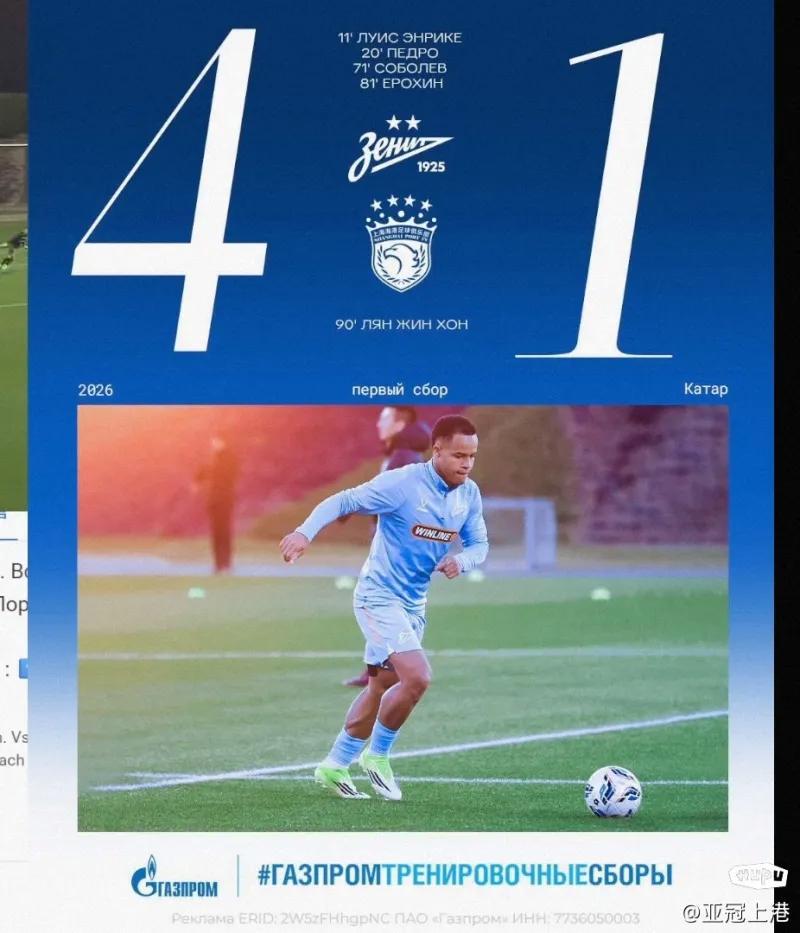 海港队1比4不敌俄超劲旅泽尼特队。